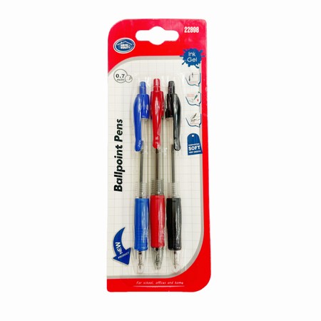 3pcs Ballpoint Pen (1Black, 1Blue, 1Red, 0.7mm) |