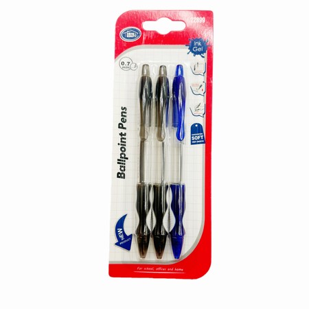 3pcs Ballpoint Pen (2Black, 1Blue, 0.7mm) |