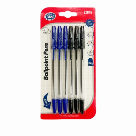 6pcs Ballpoint Pen (3Black, 3Blue, 0.7mm) |