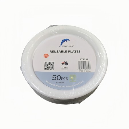 50pk Round Plastic Serving Plate (256mm)