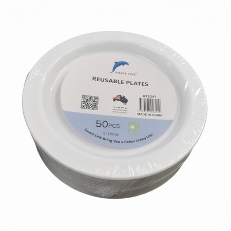 50pk Round Plastic Serving Plate (225mm)