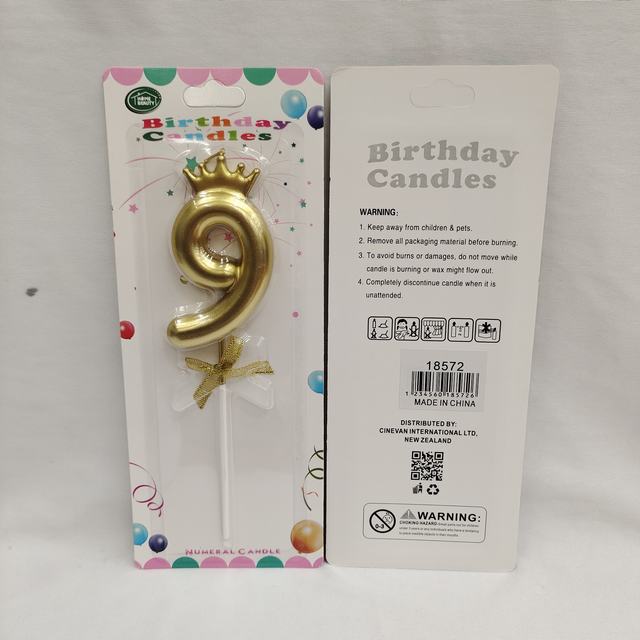 Birthday Candle Number 9 (Gold, 8cm)