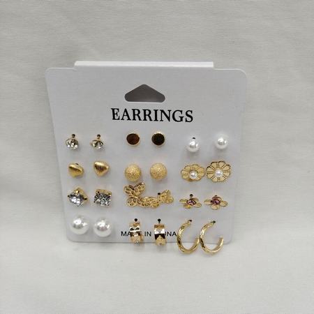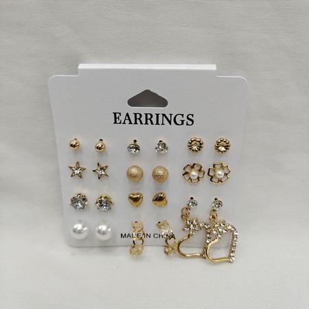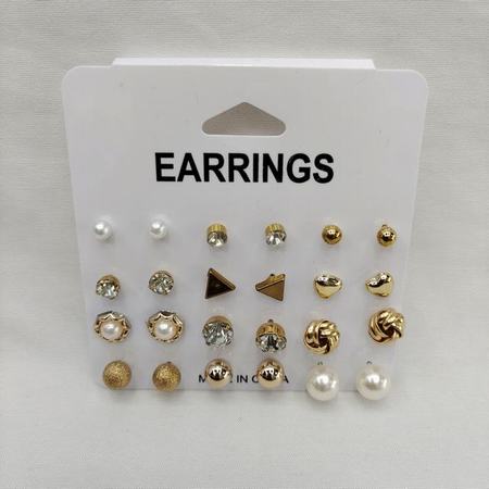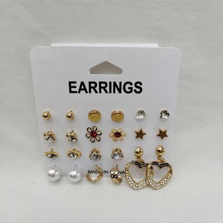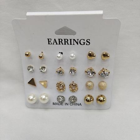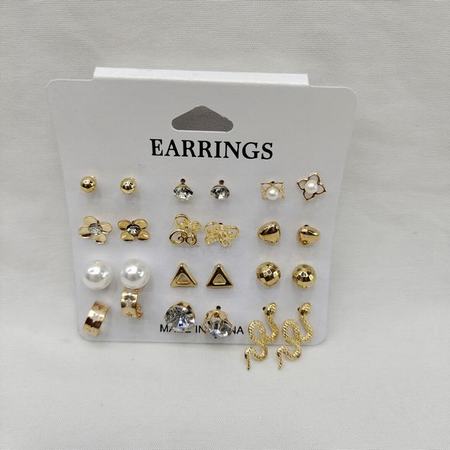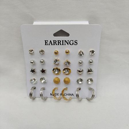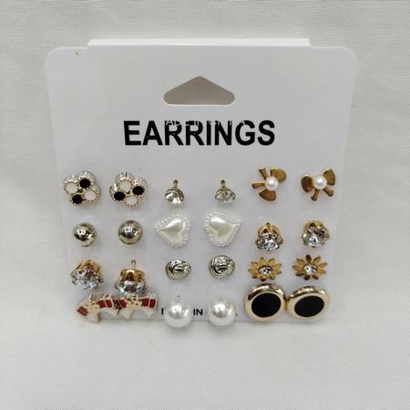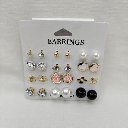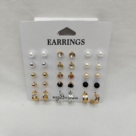 15pairs Rhinestone Stud Earrings Set (Black/ White)